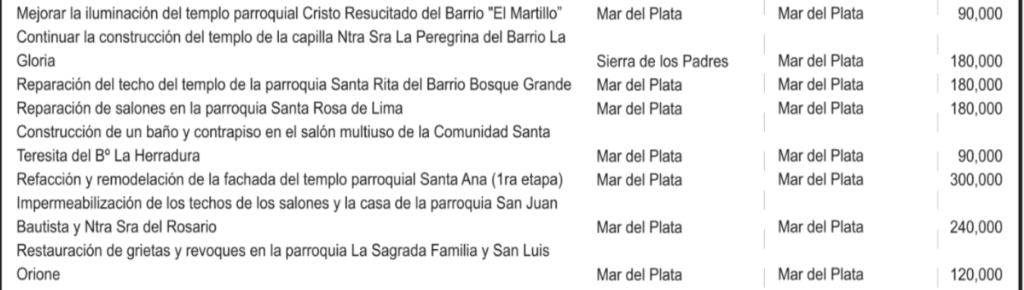 En Mar del Plata se asignaron ayudas especiales a proyectos específicos de distintas parroquias.