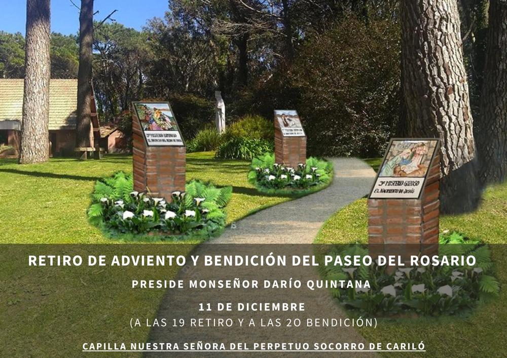 Por su parte el obispo auxiliar Darío ofrecerá el sábado 11 un Retiro con bendición del paseo del Rosario en las instalaciones de la capilla Nuestra Señora del Perpetuo Socorro en Carilo. A las 19hs será el retiro y a las 20hs la bendición del paseo.