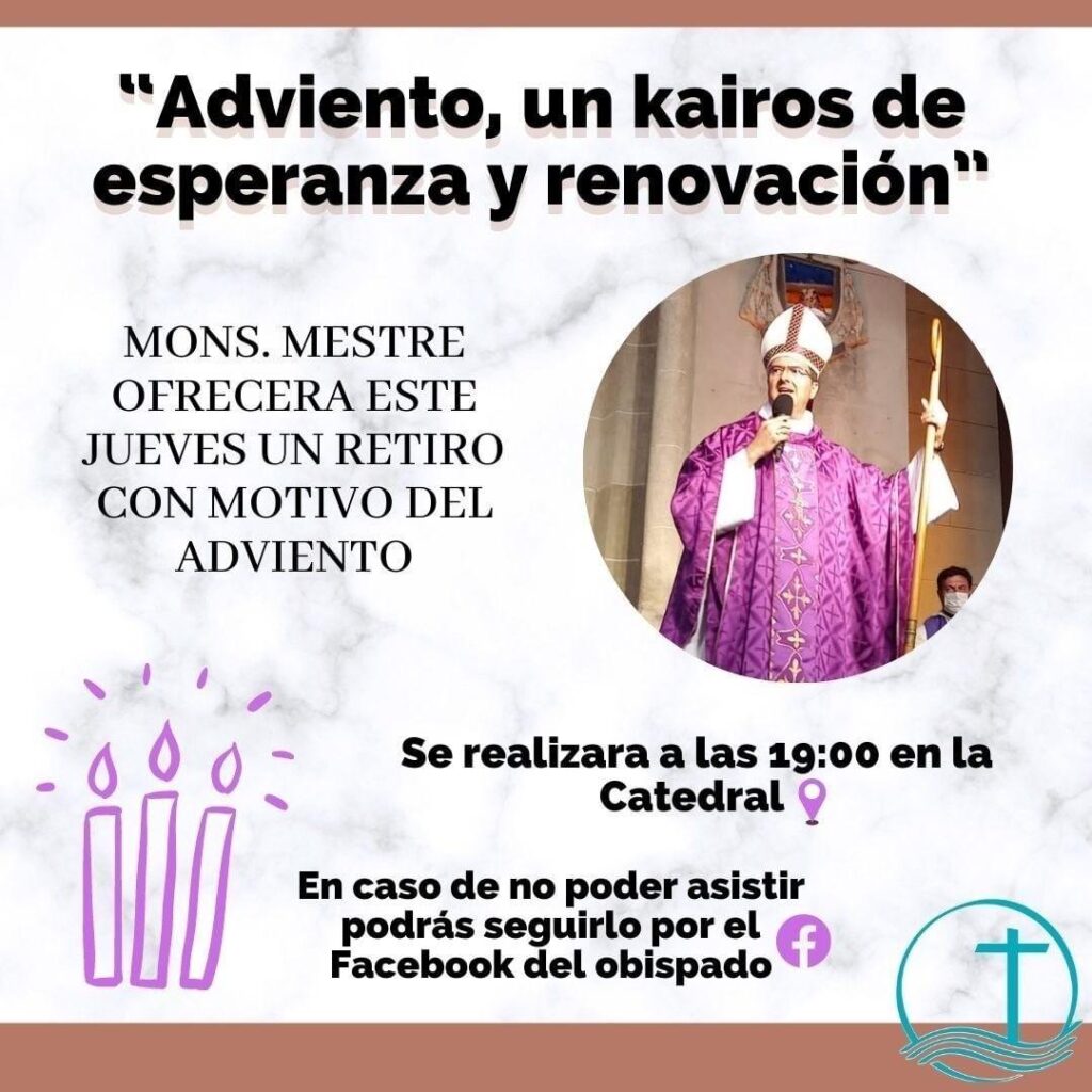 El padre obispo Gabriel ofrecerá este jueves un Retiro con motivo del Adviento, a las 19hs en Catedral. El título de la reflexión será “Adviento, un kairos de esperanza y renovación”.