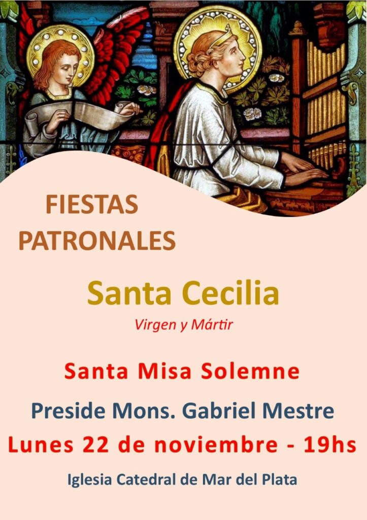 El padre Mestre presidirá esta tarde a las 19hs la misa por Santa Cecilia, patrona de la diócesis, la ciudad y los músicos, y en homenaje al templo mayor: la Catedral de los Santos Pedro, Pablo y Cecilia. La catedral de Mar del Plata fue declarada “Patrimonio Histórico Nacional”, se inauguró el 12 de febrero de 1905 y fue puesta bajo la advocación de Santa Cecilia.