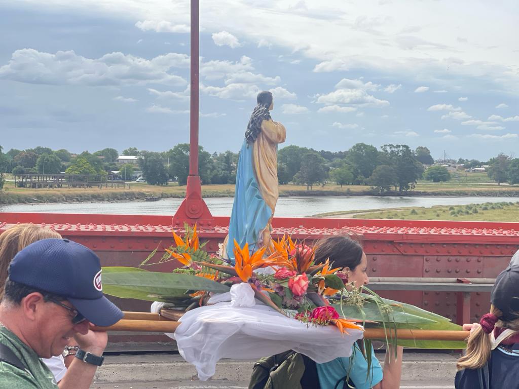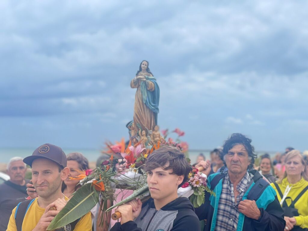 Los peregrinos en esta tradicional muestra de fe en esa ciudad partieron a las 14.30 desde la Capilla Inmaculada Concepción (74 y 47) y caminaron hasta Costa Bonita, donde celebraron la Misa.