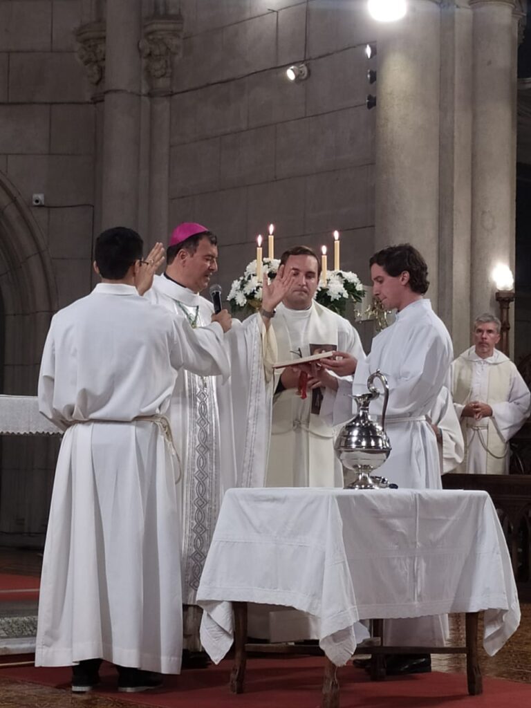 Quiero que recordemos hoy de forma vital y existencial, esta oración que se nos dijo luego de la plegaria de ordenación y la unción de nuestras manos, cuando recibíamos el pan y el vino para consagrar. La frase es muy rica y es una verdadera síntesis bíblica y litúrgica del sacramento del Orden Sagrado para la Iglesia Católica: Recibe la ofrenda del Pueblo Santo para presentarla a Dios. Considera lo que realizas e imita lo que conmemoras y conforma tu vida con el misterio de la Cruz del Señor.