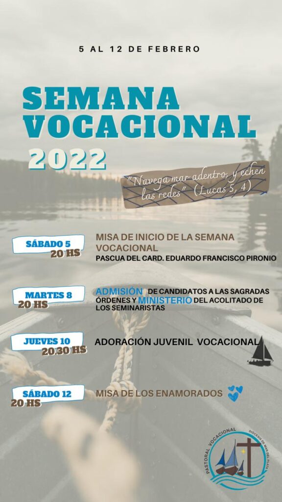 - Jueves 10 de febrero a las 20.30hs en la Iglesia Catedral te invitaremos a ir Mar adentro en tu vida y tu llamado en la Adoración Vocacional Juvenil.