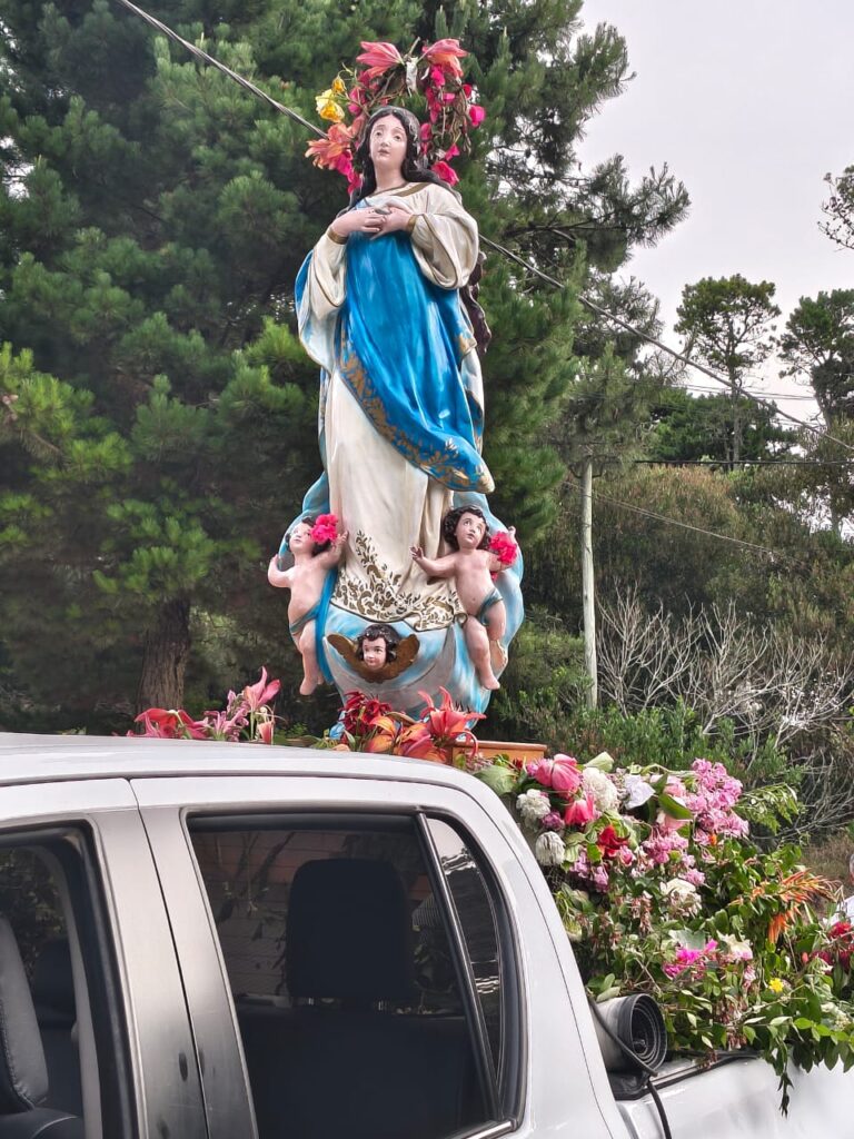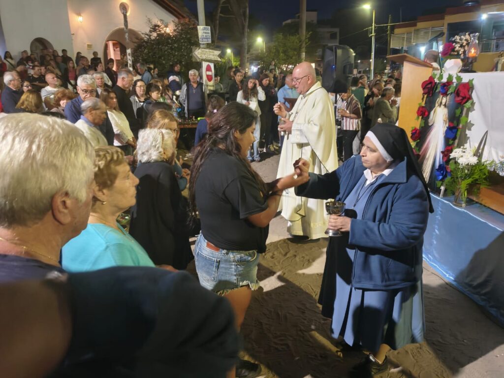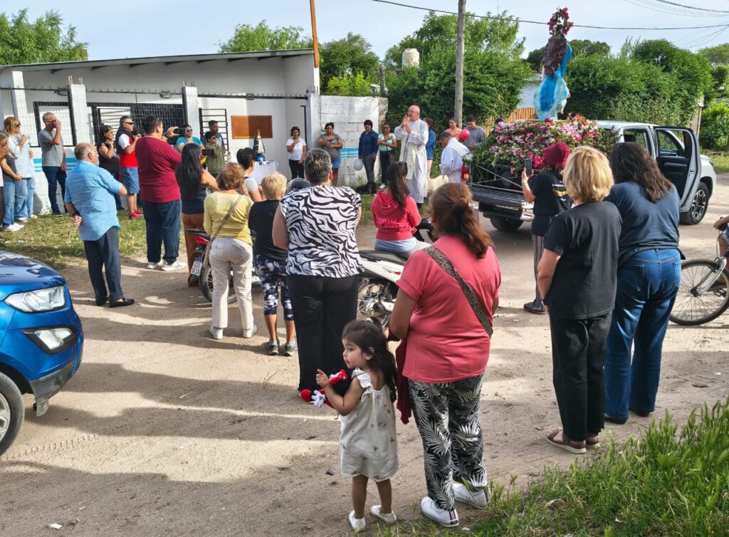La imagen de la Virgen partió desde la sede parroquial a las 16.45 y durante más de tres horas visitó a vecinos y turistas. En su paso, la Inmaculada se encontró con familias que estaban trabajando, descansando por el feriado o disfrutando de unos días de vacaciones. También llegó a los barrios más alejados, donde muchos esperaron su bendición.