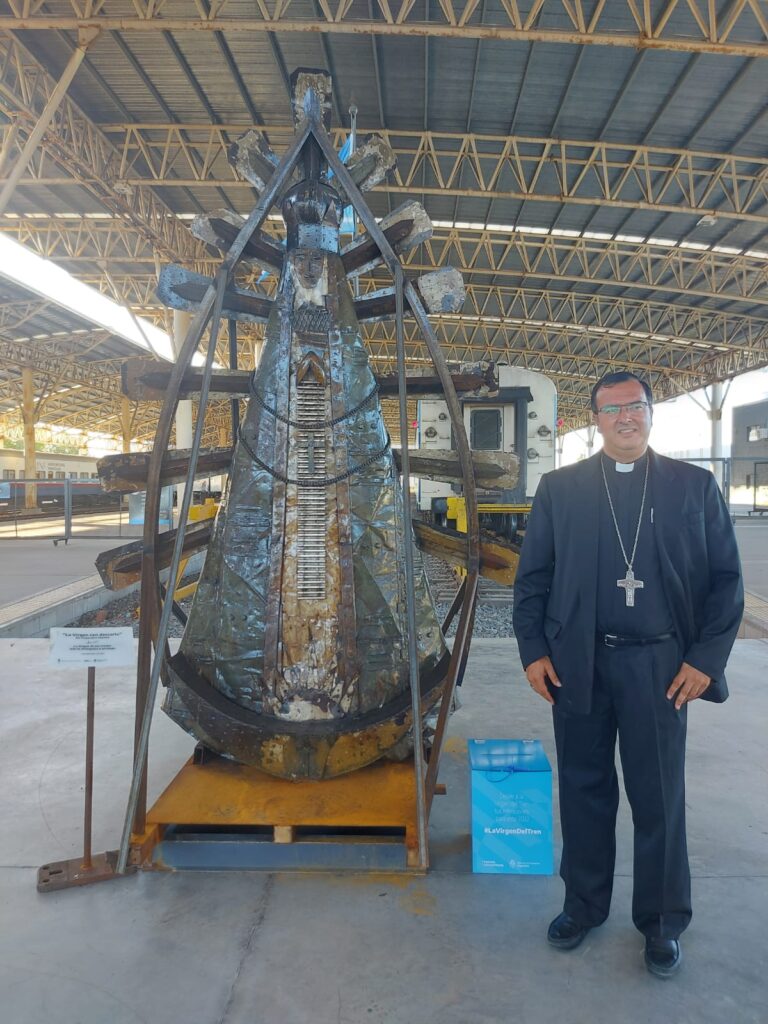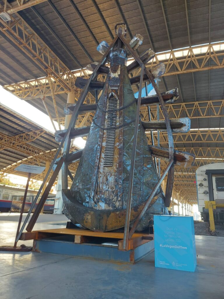 La imagen de Nuestra Señora de Luján, patrona de los ferrocarriles y de Argentina, fue confeccionada con material reciclado y tiene una altura de 3,5 metros. El acto de inauguración de la muestra se realizó en el hall de la terminal de trenes y colectivos y contó con la presencia del Ministro Alexis Guerrero, Ministerio de Transporte de la Nación Argentina, el presidente de Trenes Argentinos, Martín Marinucci, la titular de ANSES, Fernanda Raverta, autoridades provinciales y locales.